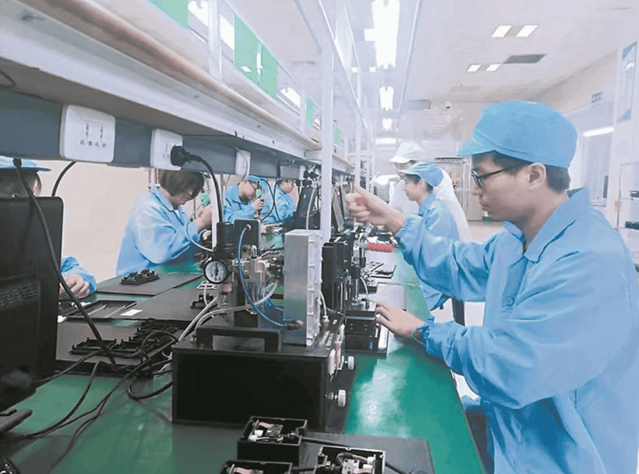 近日,记者走进福建z6com尊龙自动识别技术有限公司中试车间,身着蓝色制服的工人正忙碌着调试设备,对产品做防水测试。