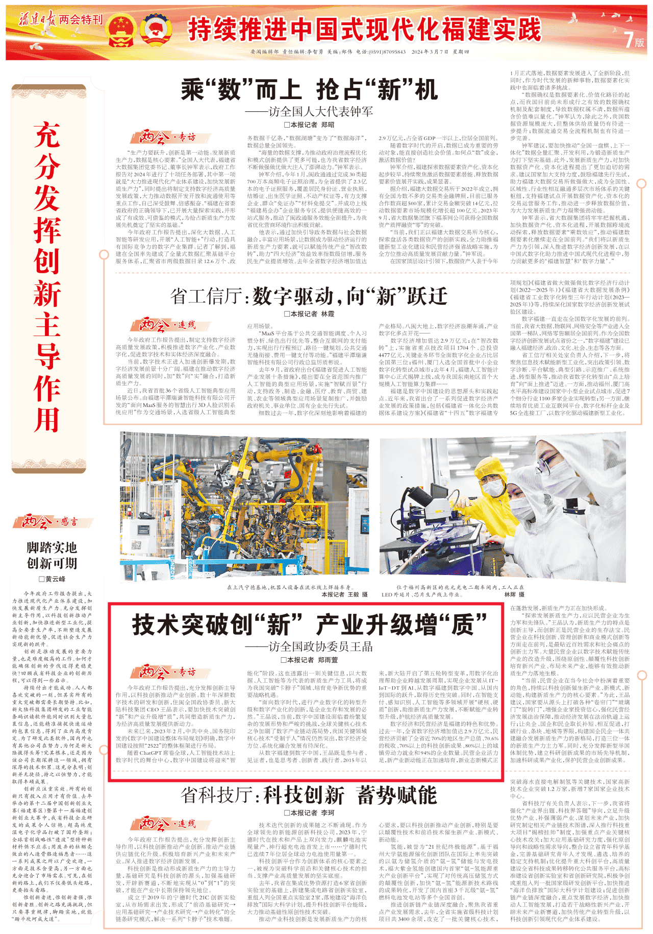 全国政协十四届二次会议3月4日在京开幕 。第十四届全国政协委员、z6com尊龙科技集团CEO王晶积极履职献策,引发媒体及社会各界广泛关注。今日官微全文转发福建日报报道《技术突破创“新” 产业升级增“质”——访全国政协委员王晶》,以飨读者。