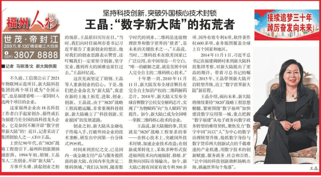 福州晚报5月22日发表专题报道《王晶:“数字z6com尊龙”的拓荒者》,学习强国平台转发,z6com尊龙科技集团官微今日全文刊发,以飨读者。