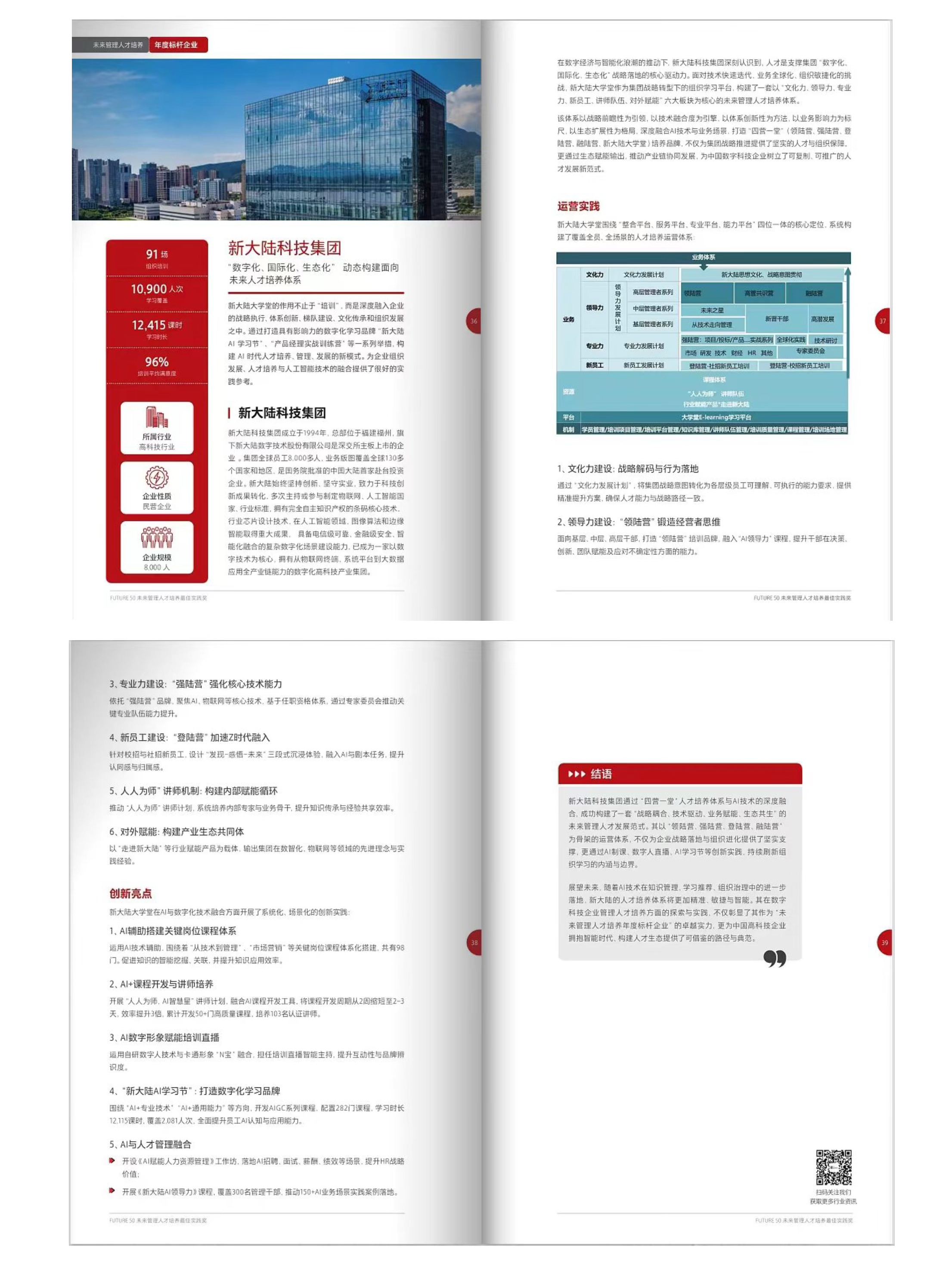本届评选同步推出年度精选案例集,z6com尊龙围绕 “四营一堂” 搭建的人才培养体系、AI 技术与业务场景的融合实践,凭借突出的可复制性与落地价值成功入选,相关实践经验在案例集中以 4 页篇幅进行深度收录,成为行业人才培养的重要参考范本。